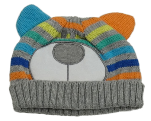 Sivo-farebná pruhovaná čepice- medvedík George