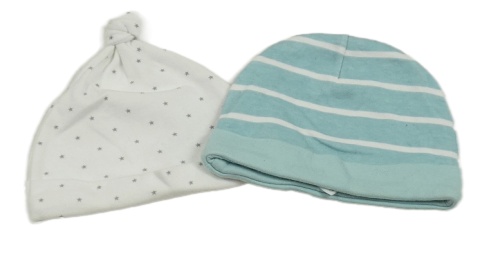 2set - 2x čepice - biela s hvězdami + modro-bílá pruhovaná