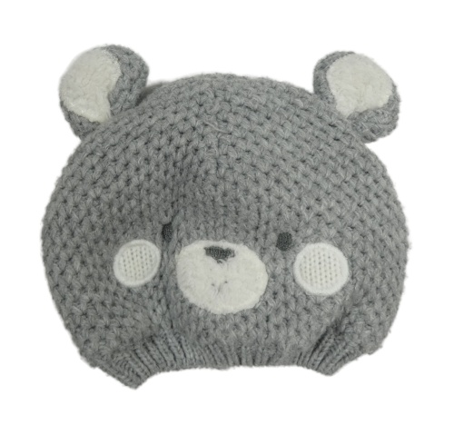 Sivá pletená podšitá čapica s medvedíkom Nutmeg