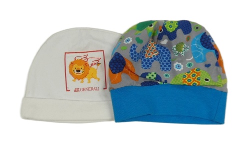 2x bavlněná čepice - modrá so slony + biela s lvem