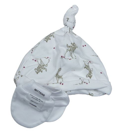 2 set - Biela čapica s koloušky + bílé rukavice