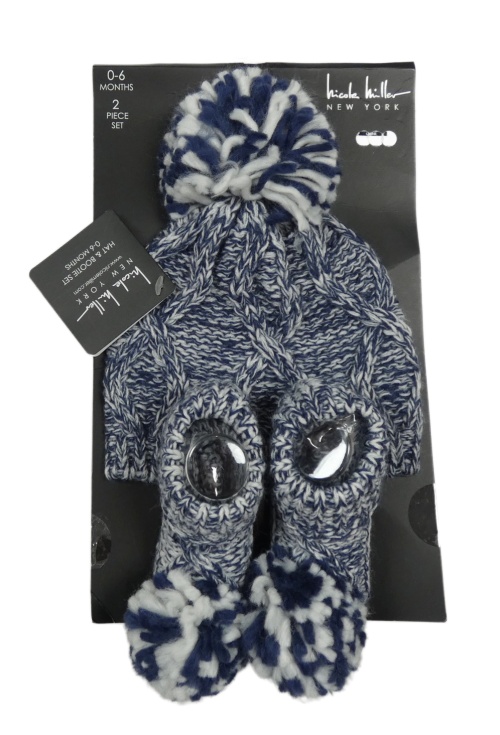 Nové - 2set - Tmavomodro-biela melírovaná čepice + cápačky