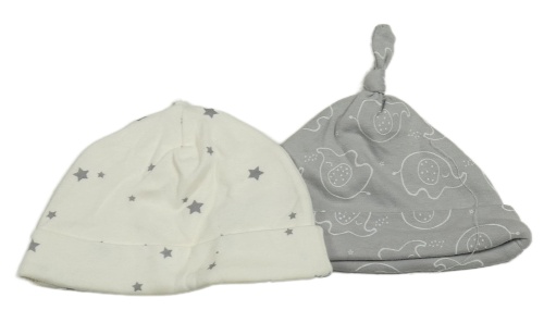 2x - Biela čapica s hvězdičkami + sivá čapica so slonmi