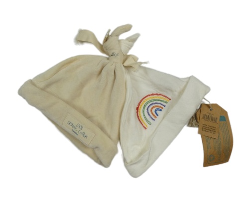 Nové - 2x - Bílá bavlnená s duhou + béžová zamatová čapica s nápisom GAP