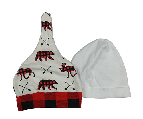 2x bavlněná čepice - biela s losmi a šipy + biela