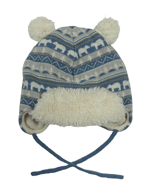 Modro-sivá vzorovaná čapica s bambulemi C&A