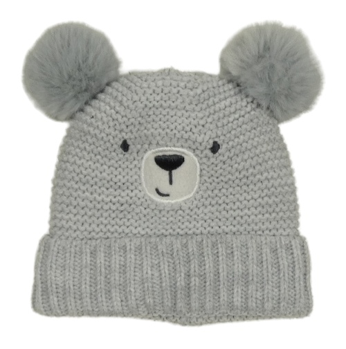 Sivá pletená čapica s medvěďom a bambulemi F&F