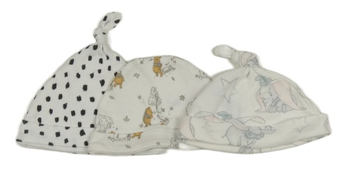 3set - 3x bílá čepice - s Dumbem + s Medvídkem Pú + s bodkami