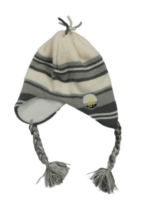 Nové - Smetanovo-šedá pruhovaná pletená podšitá ušanka
