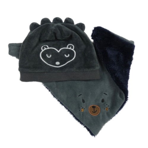 2set - Šedá sametová čepice + tmavomodro-šedý slinták
