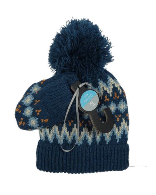 Nové - 2set - Tmavomodro-farebná pletená podšitá čapica s bambulí + rukavice