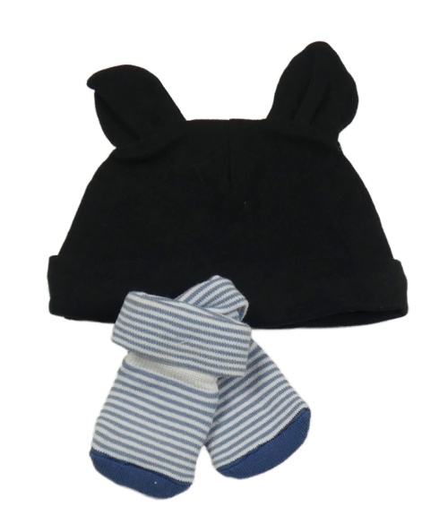 Nové - 2Set - Čierna čapica s uškami Disney + modro/bílé pruhované teplé ponožky