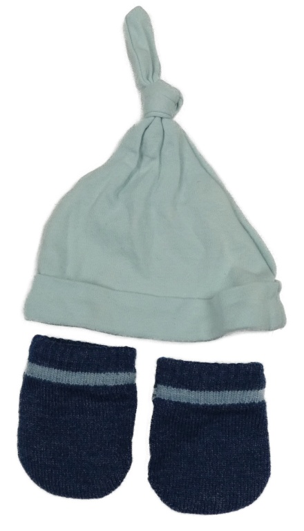 2set - mentolová čepice + tmavomodré palcové rukavice