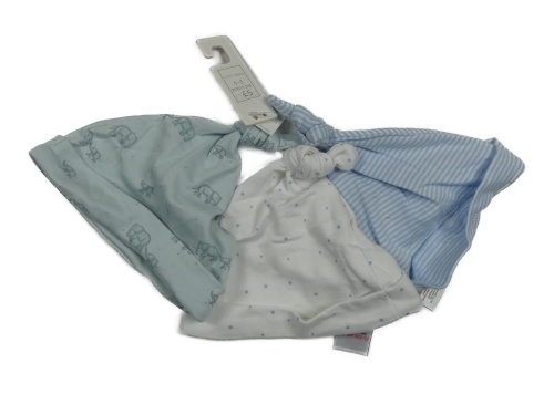 Nové - 3x bavlněná čepice - svetlomodrá so slony + modro-bílá pruhovaná + biela s hviezdami Next