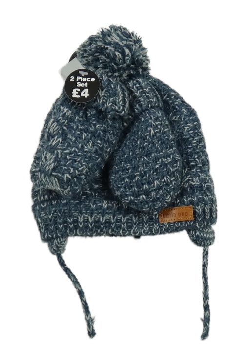 Nové - 2 set - tmavomodrá melírovaná zateplená čapica s bambulí + rukavice Early Days