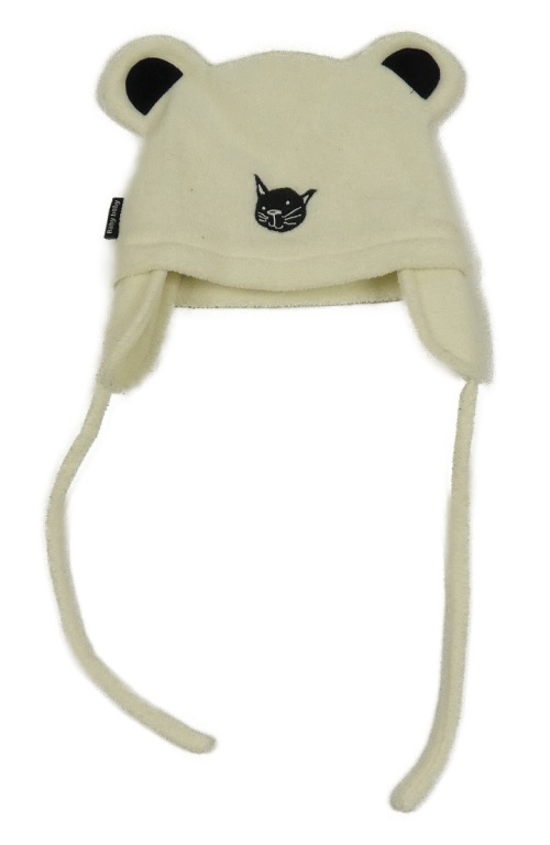 Smetanovo-čierna fleecová čapica s mačičkou a uškami