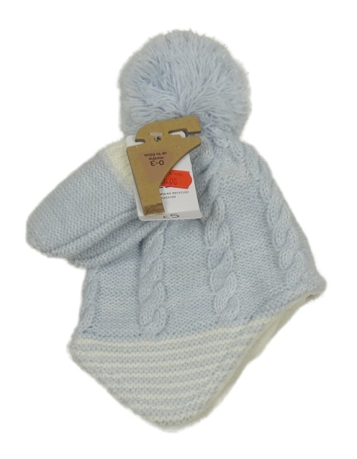 Nové - 2Set - Světlemodro-bílá0 melírovaná vzorovaná pletená čapica s pruhmi a bambulí + rukavice Nutmeg