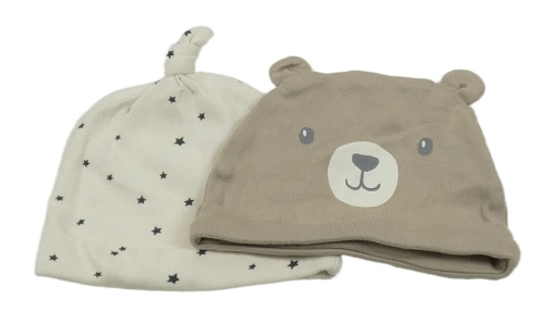 2set - smotanová čapica s hvězdami + hnedá čapica s ňufáčikom