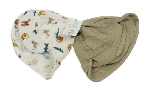 2set - 2x mušelínová šiltovka s ochranou krku - béžová + biela so zvieratkami F&F