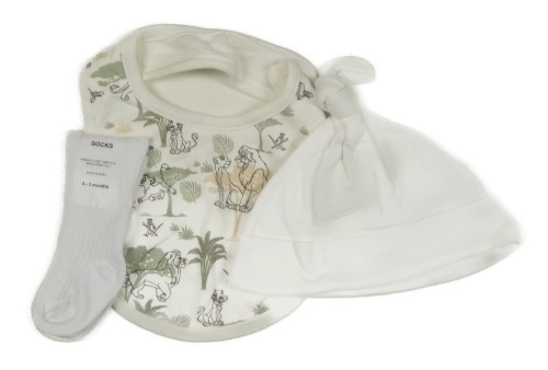 3set - Bílá bavlněná čepice + smetanový slinták s Lvím králem + biele ponožky