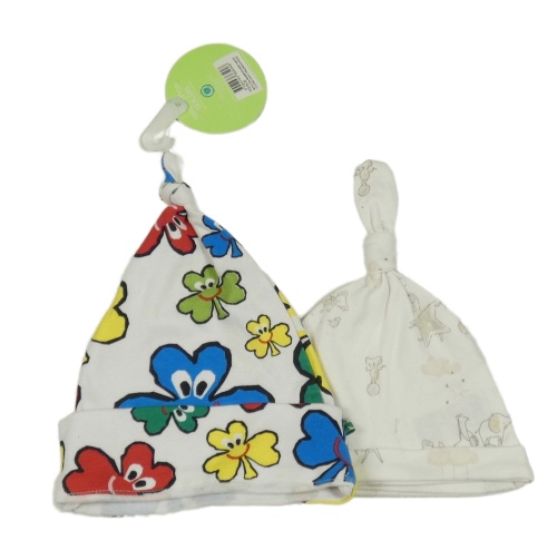 2x čepice - biela so zvířaty + biela s lístky - nová