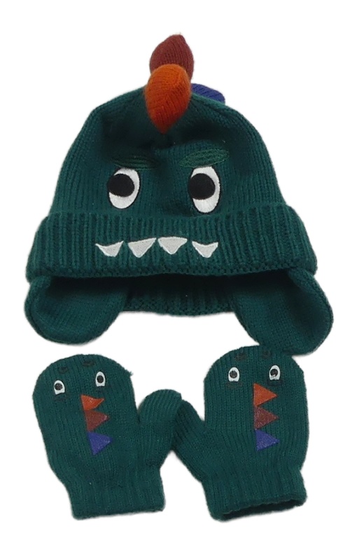 2set - Tmavozelená čapica s dinosaurem + rukavice Primark