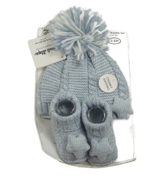 Nové - 2set - Světlemodro-biela melírovaná čapica s bambulí + pletené cápačky s hviezdami
