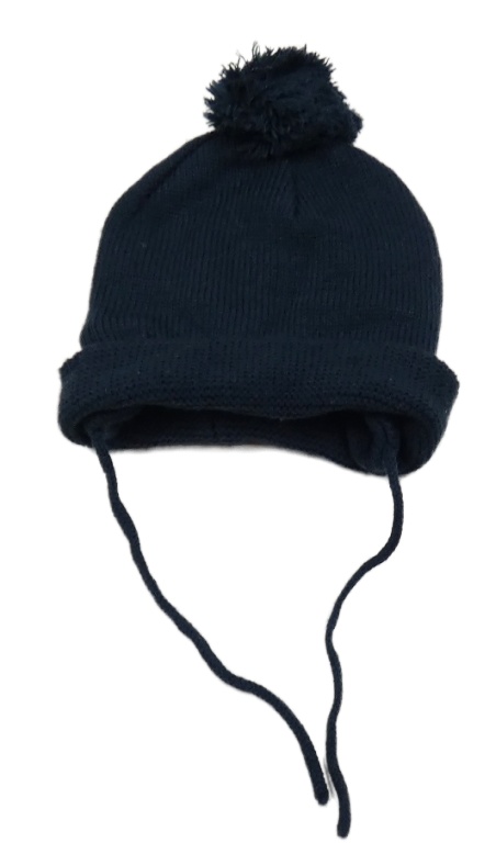 Tmavomodrá pletená zateplená zavazovací čapica s brmbolcom Smile