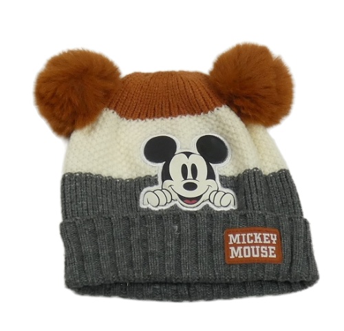 Rezavo-bielo-tmavosivá čapica s Mickeym a bambulemi Disney