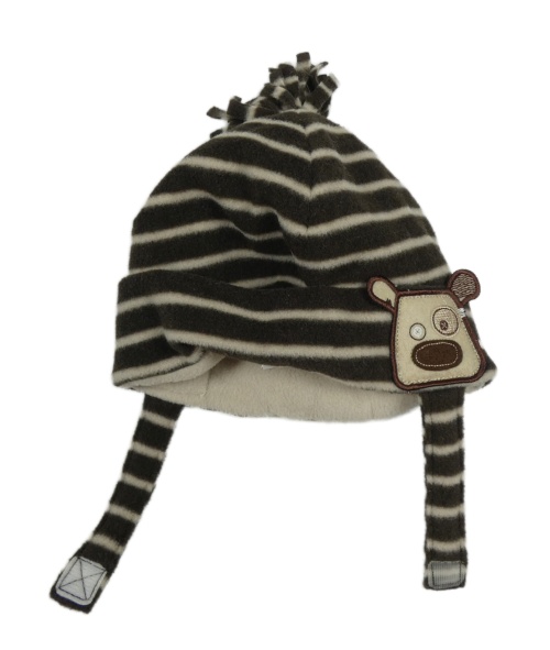 Hnedo-béžová pruhovaná fleecová čapica s psíkom George