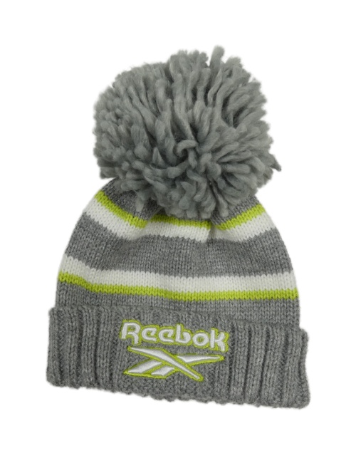 Sivo-bielo-limetková pruhovaná pletená čapica s logom a brmbolcom Reebok