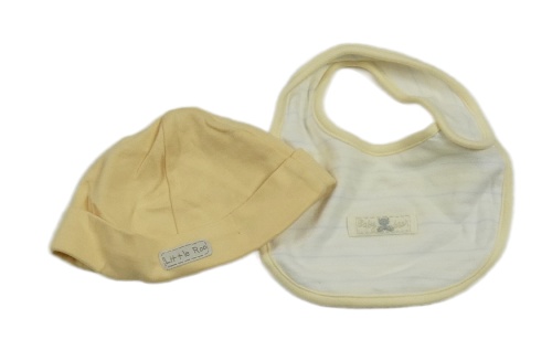2set- žltá čapica s nášivkou+ bílý pruhovaný nákrčník