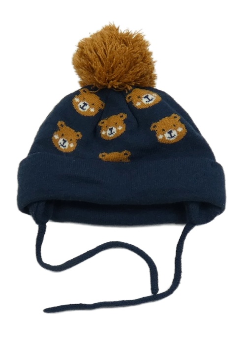 Tmavomodrá pletená zateplená čapica s medveďmi a brmbolcom