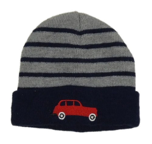 Šedo-tmavomodrá pruhovaná s autom