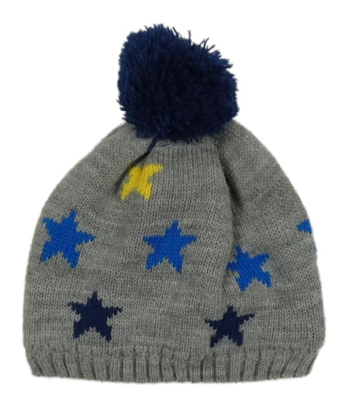 Sivá melírovaná pletená čapica s hviezdami a brmbolcom Lupilu