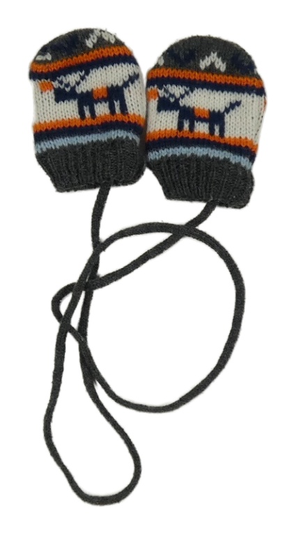 Tmavošedo-bílé vzorované pletené rukavice na šňůře so sobom