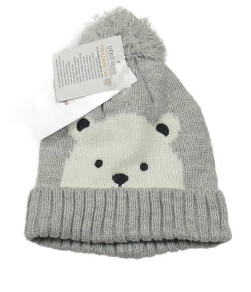 Nové - Sivo-biela čapica s medvedíkom a brmbolcom Ergee