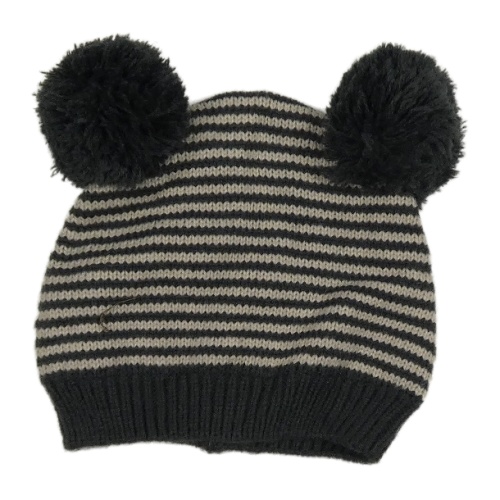 Tmavošedo-biela pruhovaná čapica s bambulemi Next