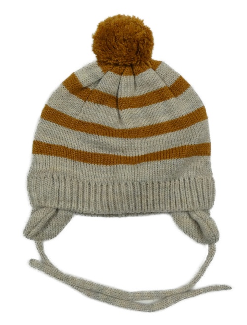 Béžovo-okrová pruhovaná pletená čapica s brmbolcom H&M