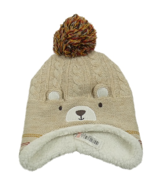 Béžová pletená zateplená čapica s ňufáčikom a brmbolcom Nutmeg