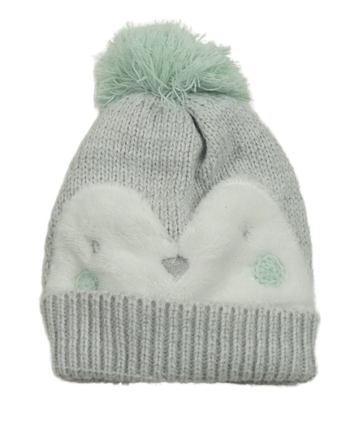 Sivá pletená čapica s tučňákem a mintovou brmbolcom Miniclub