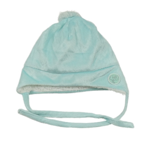 Svetlomodrá plyšová zateplená zavazovací čapica Ergee
