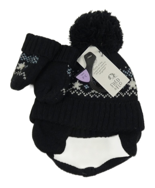 Nové - 2set - Tmavomodro-biela čapica so vzorem + rukavice F&F