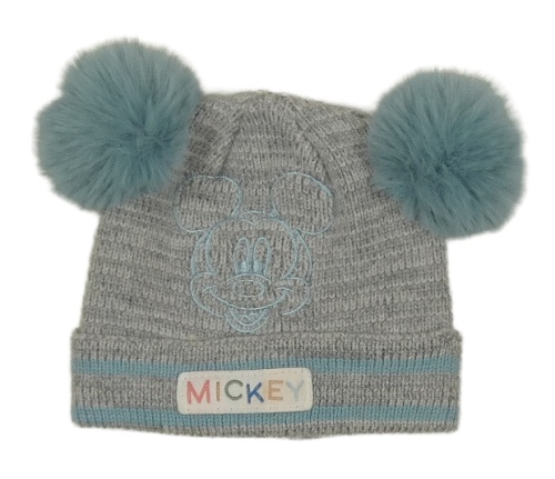 Sivo-modrá melírovaná čapica s Mickey a pruhmi a bambulemi PRIMARK