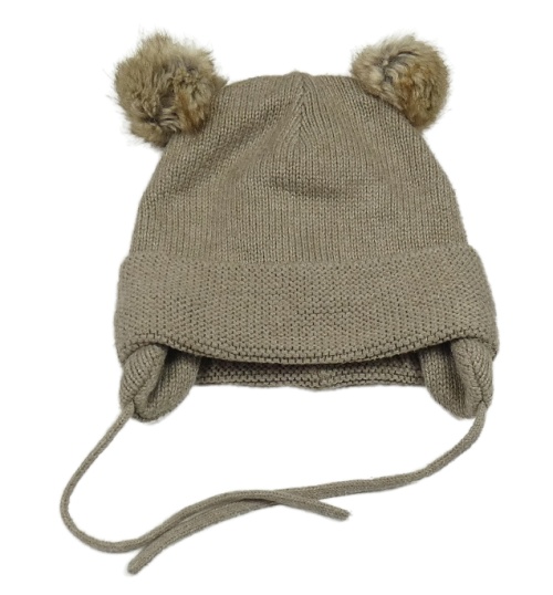Kávová melírovaná pletená zavazovací čapica s bambulemi