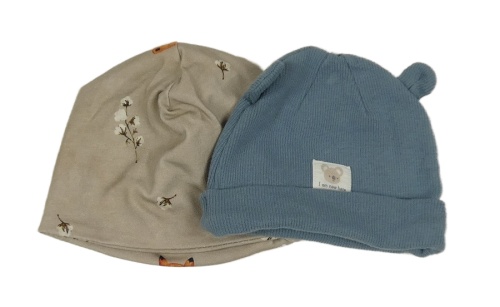 2set - 2x čepice - béžová s liškami + modrá žebrovaná s uškami