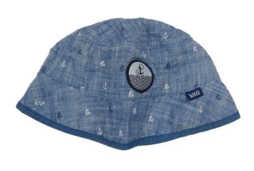 Svetlomodrý melírovaný klobúk s kotvami a loďkami