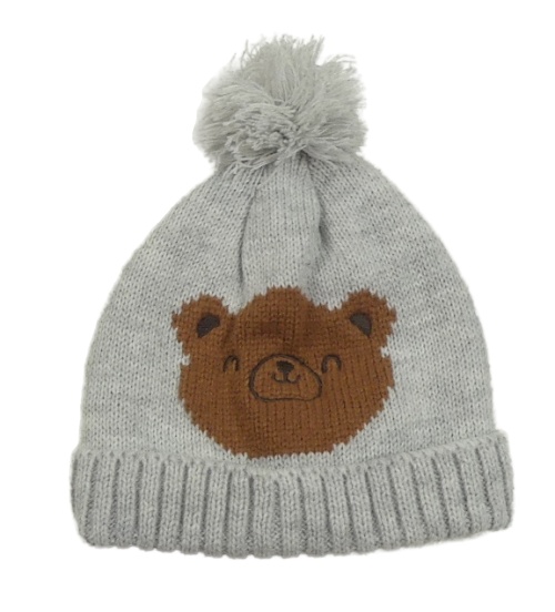 Svetlosivá melírovaná pletená čapica s medvěďom a brmbolcom Ergee