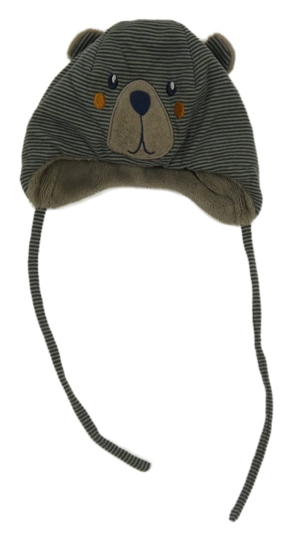 Tmavomodro-béžová prúžkovaná čapica s medvedíkom Sterntaler