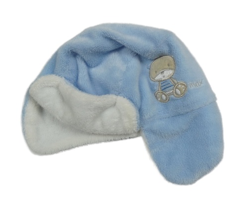 Světlemodrá chlupatá ušanka s medvedíkom George